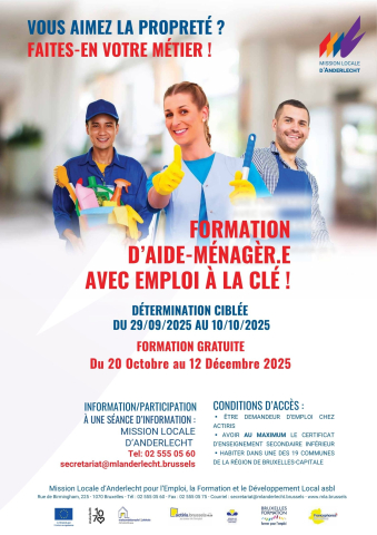 Cette formation vise à développer les compétences liées aux techniques de nettoyage, à l’hygiène, à l'utilisation des produits, et les aspects liés à la relation au client. A la fin de la formation, vous répondrez aux exigences de savoir-faire et de savoir-être des agences de titres-services.Nous nous engageons à vous proposer un contrat de travail (sous condition de réussite de la formation).