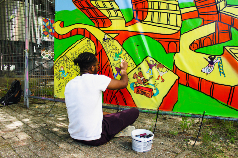 Tout le monde a le droit d’être créatif ! Il suffit d’un peu de matériel : du papier, du carton, des pinceaux, des crayons, des bombes de peinture… et c’est parti!