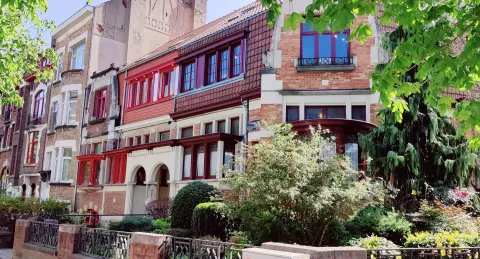 Le quartier du Meir, près du Parc Astrid recèle de quelques belles réalisations Art Déco et modernistes et a su garder une authenticité architecturale par son harmonie et sa cohérence. Anderlecht, commune aux multiples facettes, connaît un important développement urbanistique dans l’Entre-deux-guerres. Le Parc Astrid (rebaptisé ainsi en 1935) est inauguré en 1911. Les rues qui l’avoisinent vont alors constituer le théâtre du déploiement de l’architecture Art Déco. De nombreux anonymes très inspirés y côtoient de grands noms de l’architecture tels François Van Meulecom ou Antoine Courtens et participent à la constitution d’un ensemble très homogène. Notre promenade nous mènera jusque dans le centre historique de la commune, là où se dresse l’église St Guidon. Nous pourrons y découvrir un bâtiment étonnant de l’artiste Victor Servrancks, figure majeure du modernisme belge plus connu pour ses grandes toiles abstraites.