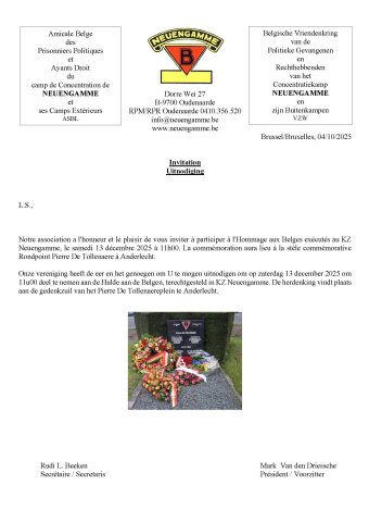 Hommage aux Belges, exécutés au KZ Neuengamme