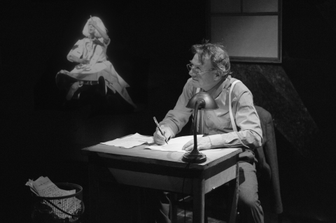 Et durant des semaines, chaque jour, Kafka écrit avec un soin extrême une lettre de plus à l’enfant. La fiction vole au secours du chagrin. Un récit humoristique, fantaisiste, mis en images sur scène par les mille prouesses de deux comédiens et de quelques astucieux artifices.