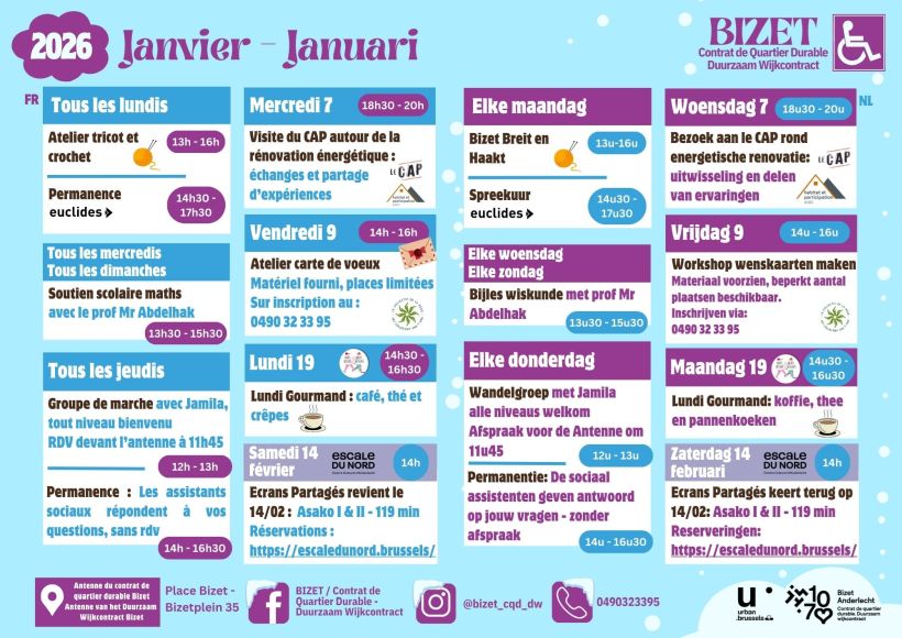 - Hoe ga ik nu te werk? Maak een afspraak met het team van het DWC Bizet via mail (tnova@anderlecht.brussels) of kom langs in de Antenne Bizet (Bizetplein 35). We helpen je van A tot Z om jouw project te verwezenlijken.