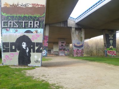 Door het kunstenaarscollectief Les îles Mardi (Hedi Baka, JER90 et WENC) en het jeugdhuis Rezolution vzw - Kanaalbrug (tussen het Emile Vanderveldesquare en de Emile Carpentierstraat). Reusachtige muurschildering op de muren van het voormalige station Kuregem over thema’s die verband houden met de wijk (2024)