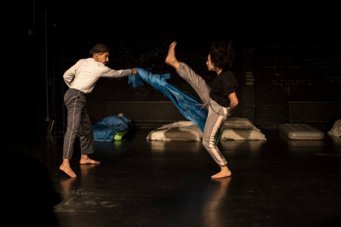 Cette salle de théâtre sombre et neutre, comprenant bon nombre d'accessoires est leur seul dénominateur commun pour, en une journée, créer ensemble, se rencontrer, se défier artistiquement et repousser les limites de chacun. Telle est la tâche palpitante qui les attend. Avec le public, nous découvrirons le résultat.